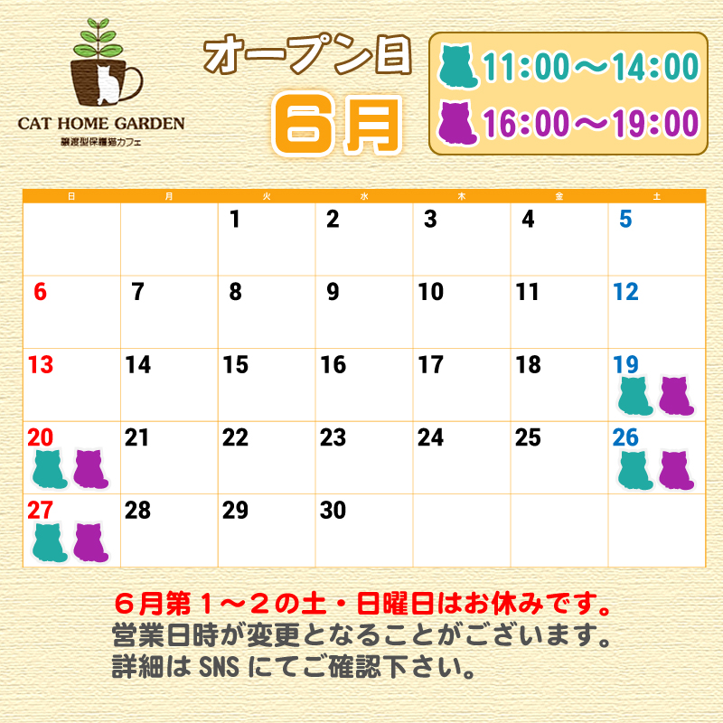 子猫のトライアルやワクチン接種などにより「CAT HOME GARDEN」は6/19(土)からの営業となってます。