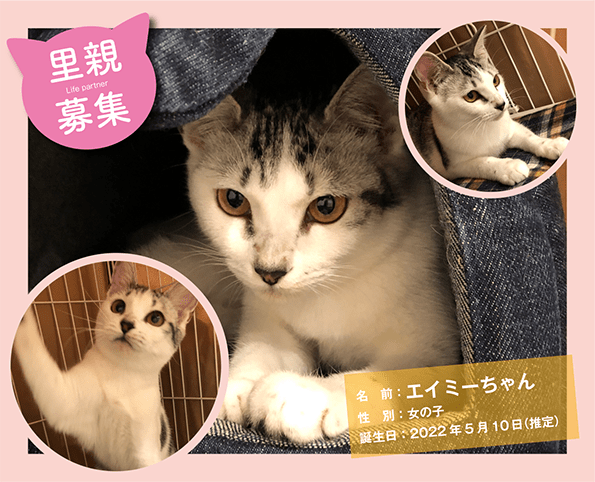「エイミー」ちゃんの里親さんになってくれる方を募集しております。