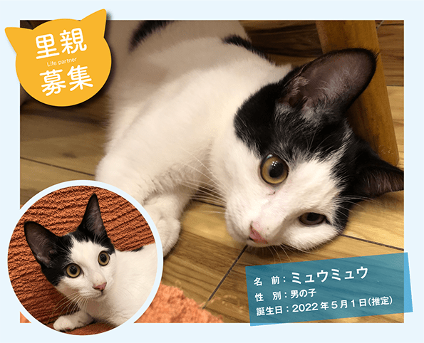 「ミュウミュウ」君の里親さんになってくれる方を募集しております。