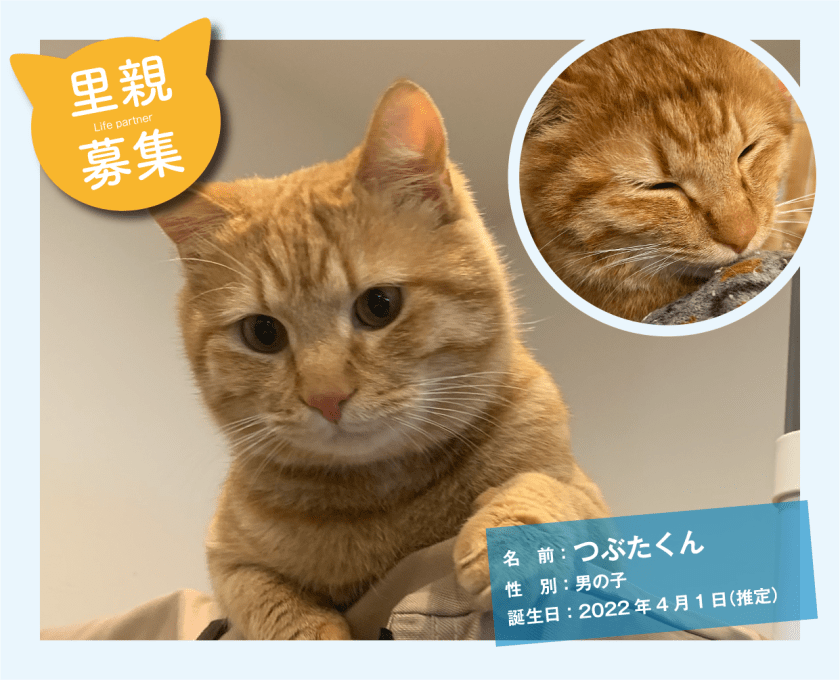 「つぶた」くんの里親さんになってくれる方を募集しております。