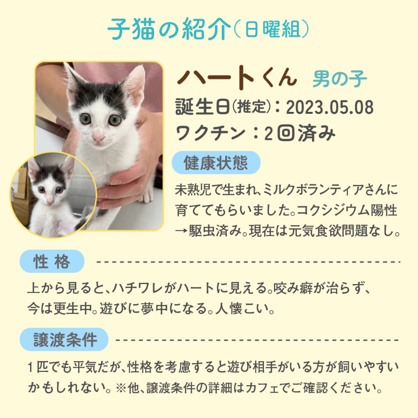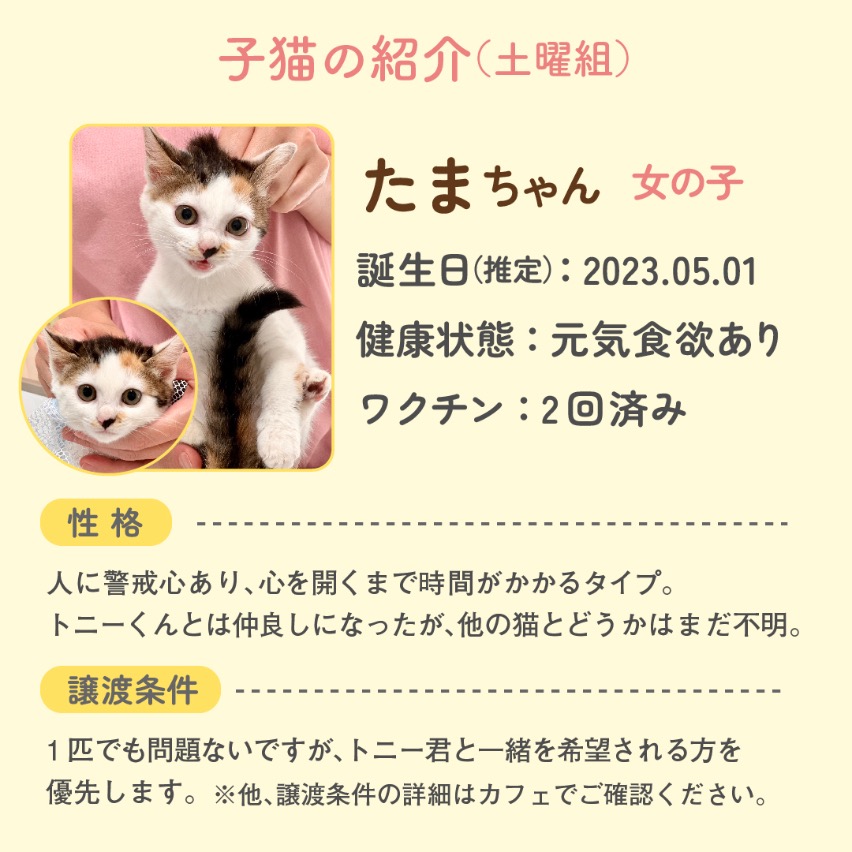 子猫の受け入れをご検討の方はぜひカフェに足を運んでいただけますと幸いです!