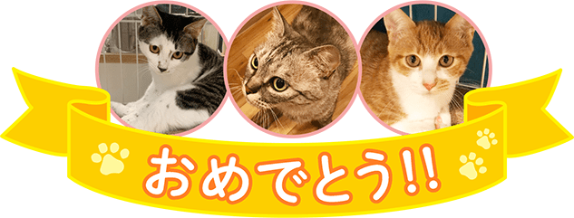 この度、「ゲン」くん、「ジョー」ちゃん、「メグ」ちゃんは里親さんへ正式に譲渡されることになりました。