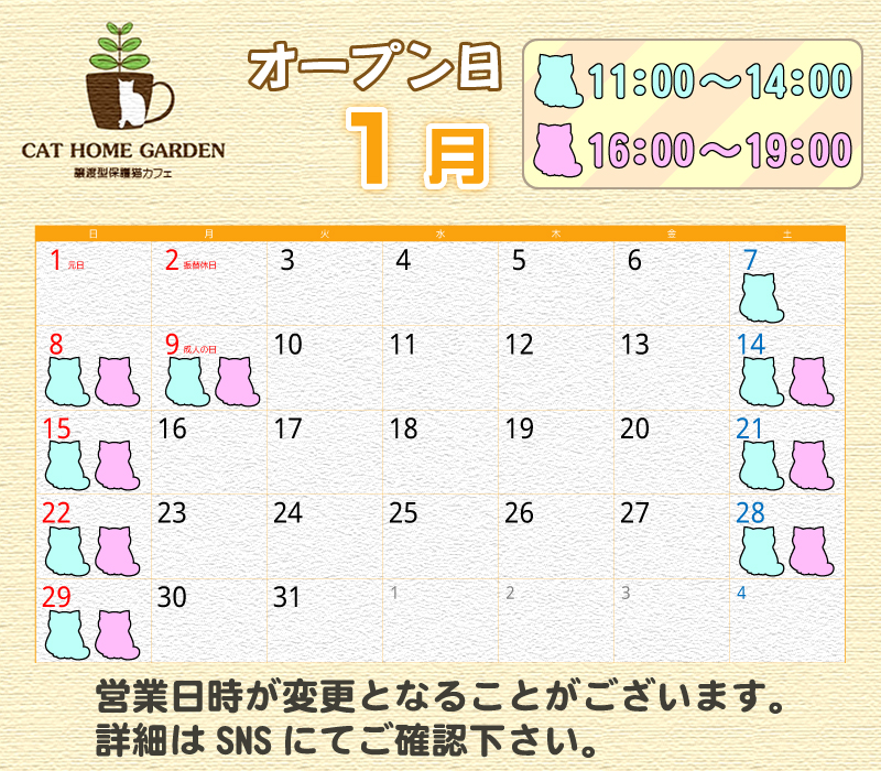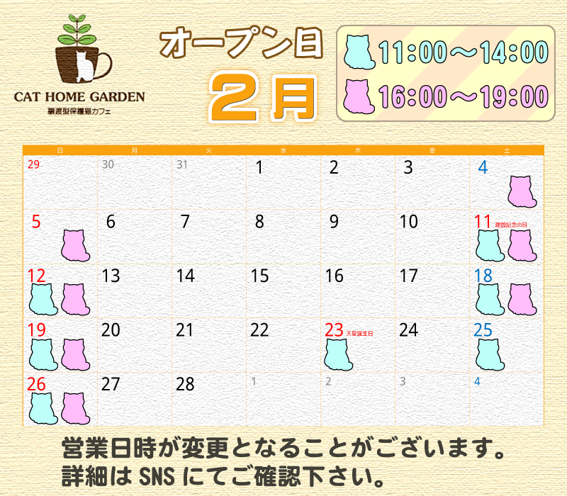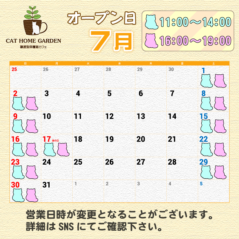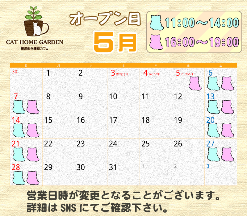 「CAT HOME GARDEN」の今月の営業スケジュールは以下となってます。