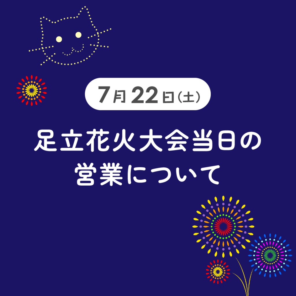 足立花火大会の開催に伴い、営業内容を一部変更させていただきます。