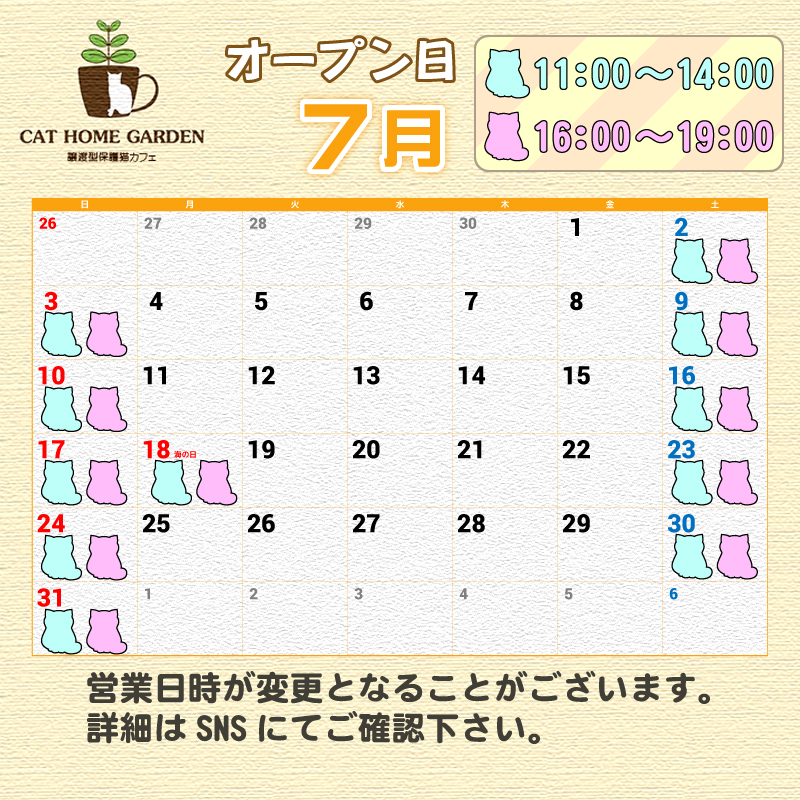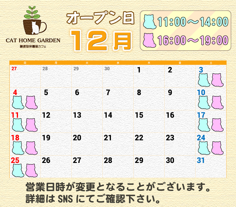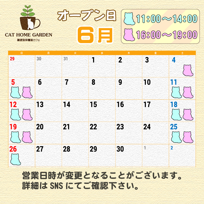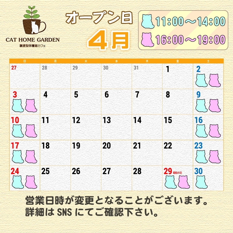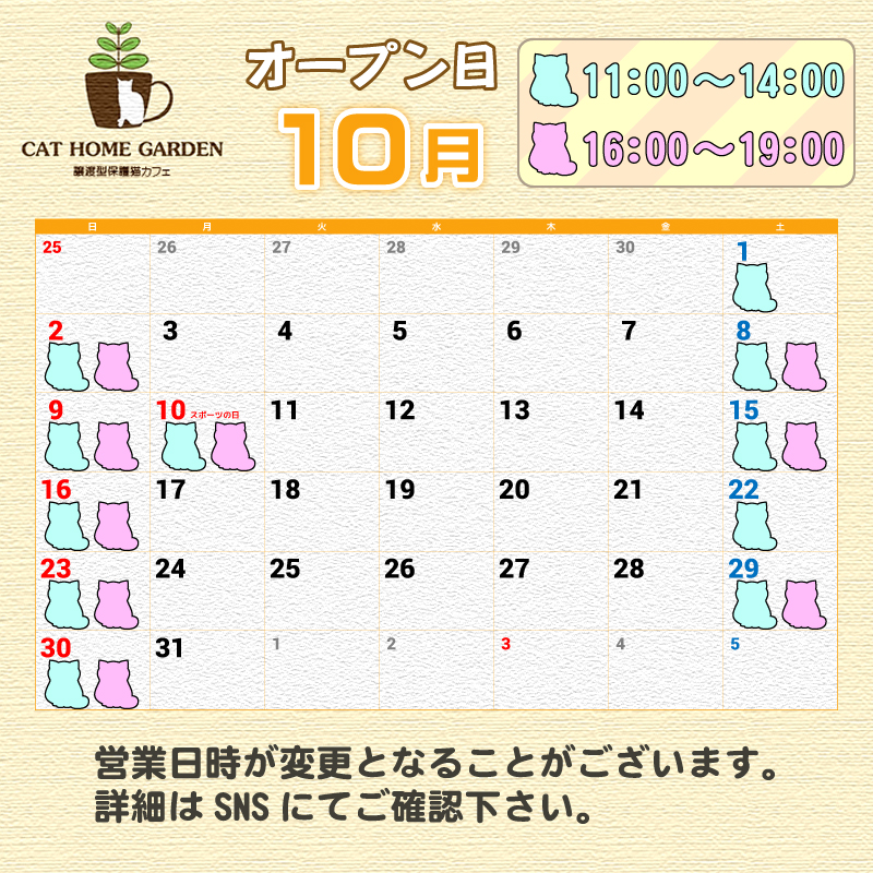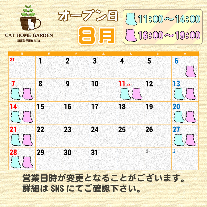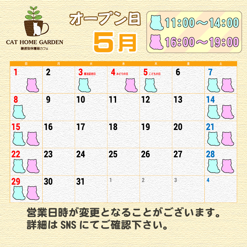 「CAT HOME GARDEN」の今月の営業スケジュールは以下となってます。